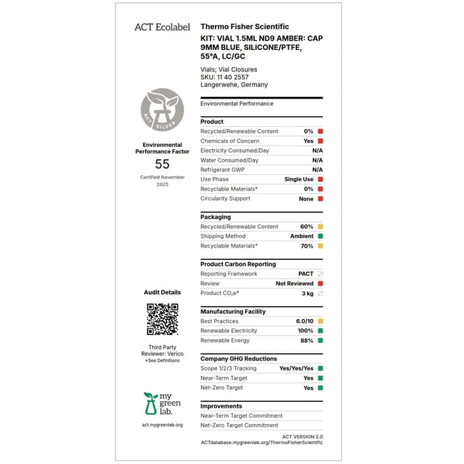 Fisherbrand™ Certified Vial Kit 9mm short thread, Amber Glass, 1.5mL, PP Screw Cap, Center hole, Silicone/PTFE septum
